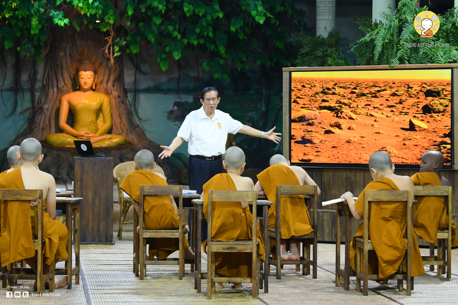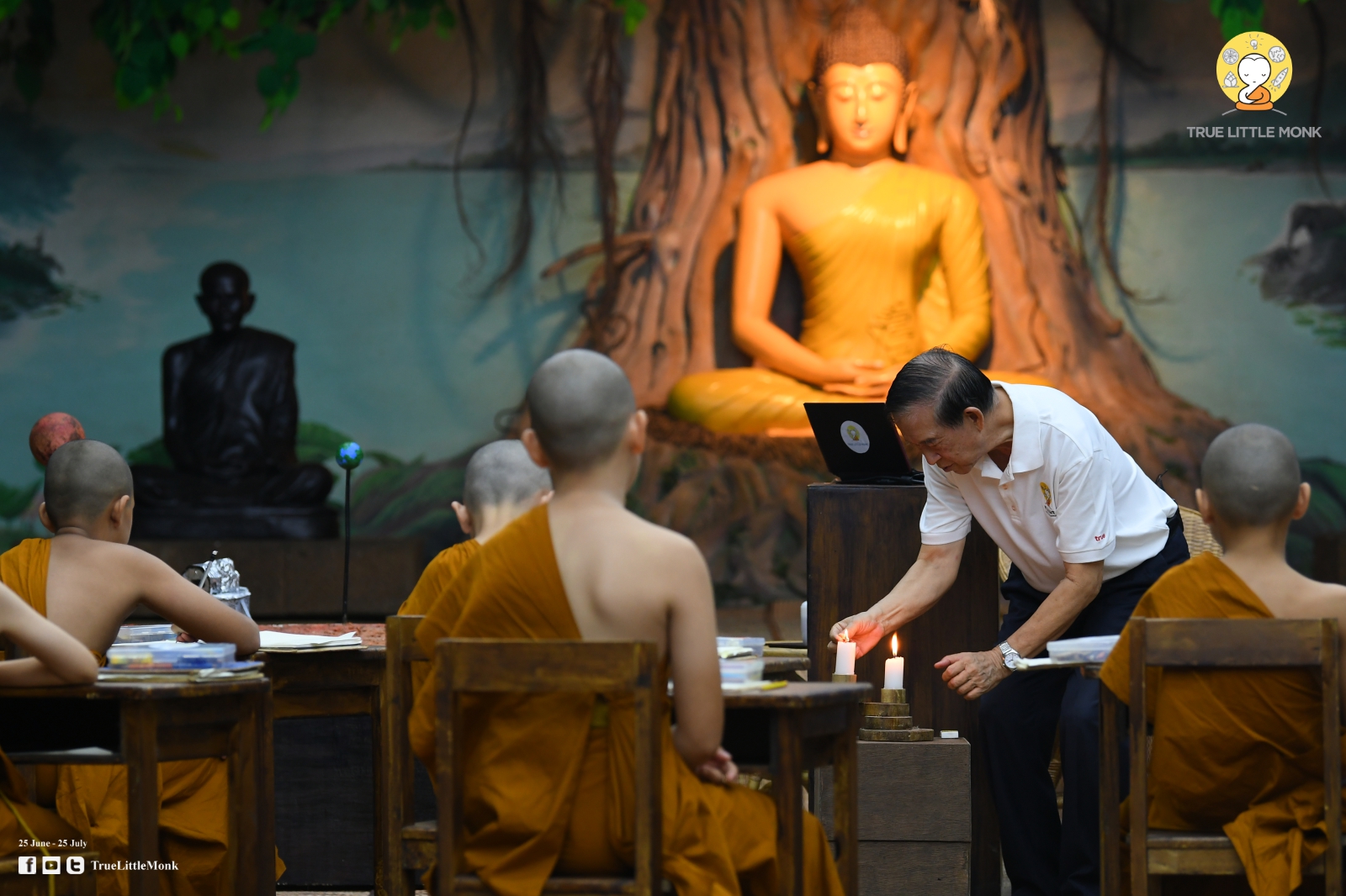 In the afternoon, learn the importance of meditation and how to do meditation from Dr. Art-Ong Jumsai na Ayudhaya, Layman representatives, TRUE LITTLE MONK project advisor, CEO of Sathya Sai School, Lopburi, Thailand